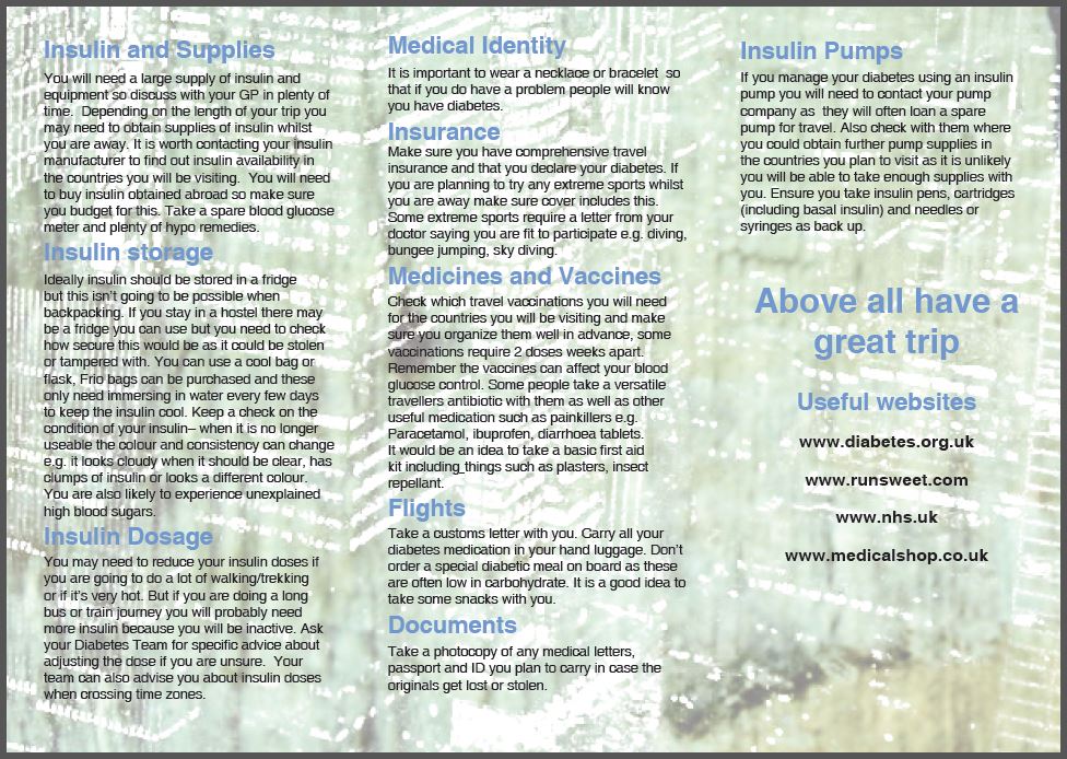 JETF supporting the design and printing of Backpacking Leaflet Publication by Nicky Green (Children’s Diabetes Specialist Nurse)